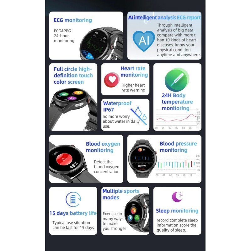 Monitor de salud Smart Watch avanzado con ECG & PPG