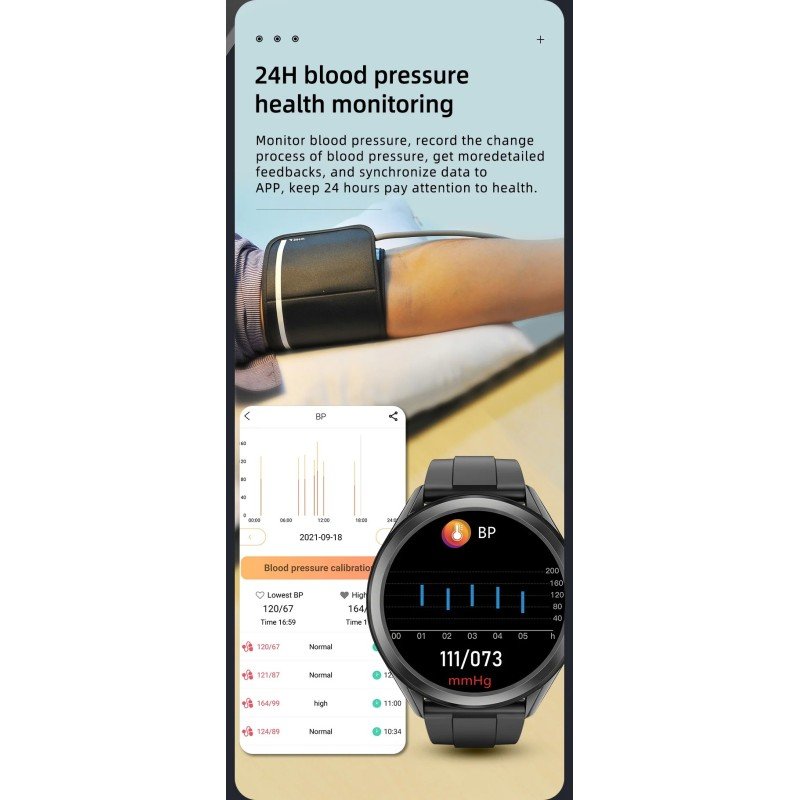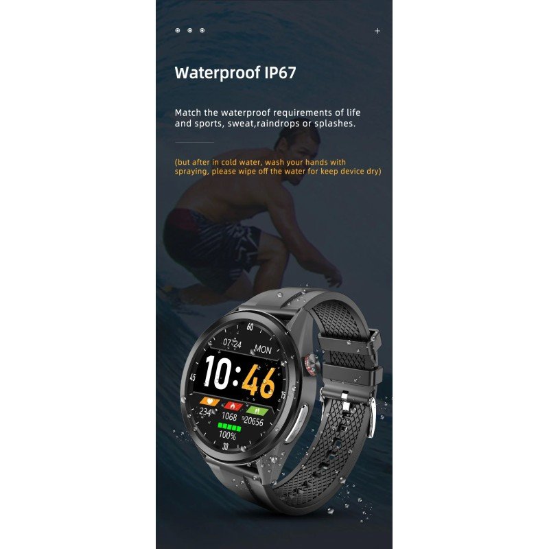 Funciones: Monitor de presión arterial, monitor de ECG, monitor de oxígeno en sangre, monitor de frecuencia cardíaca, alarma de frecuencia cardíaca, temperatura corporal, advertencia de temperatura, informe de diagnóstico auxiliar de IA, monitor de sueño, cronómetro, recordatorio de despertador, recordatorio de sedentarismo, recordatorio de mensaje de texto, recordatorio de WeChat, recordatorio de QQ, recordatorio de llamada, luz de pantalla automática, negarse a contestar teléfono, modo deportivo (correr, ciclismo, fitness, ping pong, baloncesto, bádminton, saltar la cuerda), encontrar pulsera, control remoto de la cámara, paso de ejercicio, pista de ejercicio, calorías, pronóstico del tiempo, ejercicio de WeChat, almacenamiento de información, IP67 a prueba de agua, interruptor de marcación (4 esferas de reloj de estilo), ajuste de brillo, cuidado.