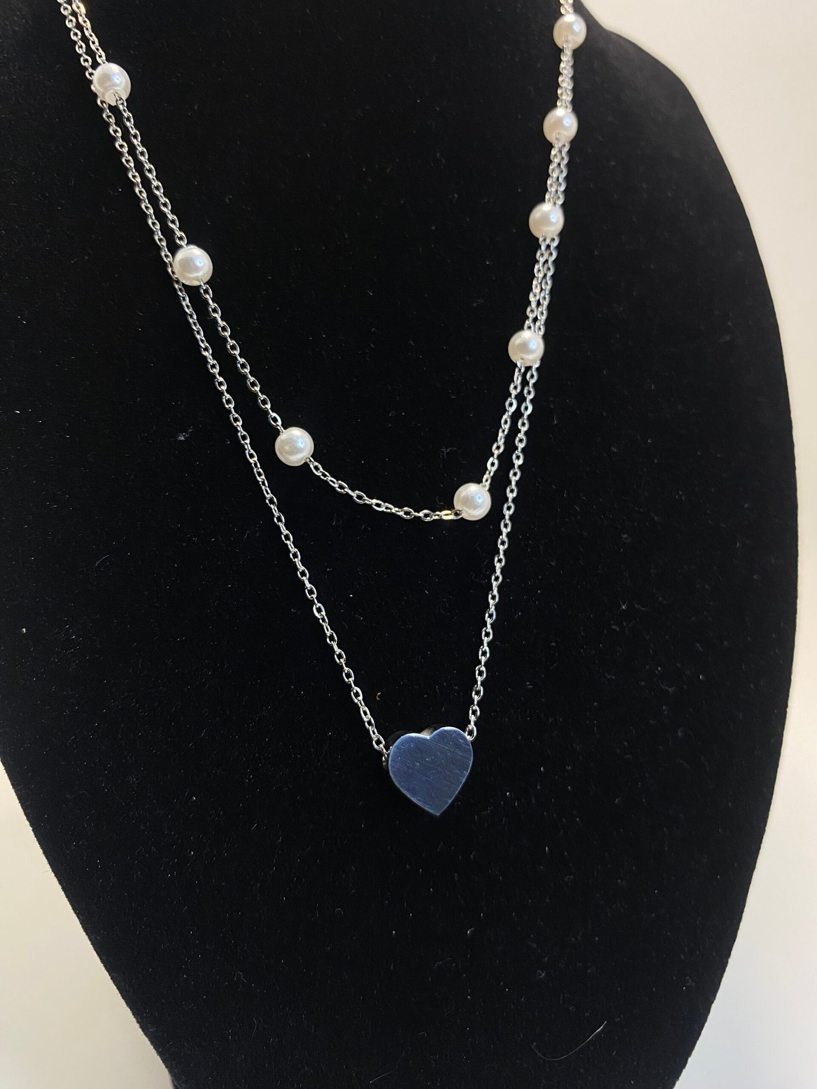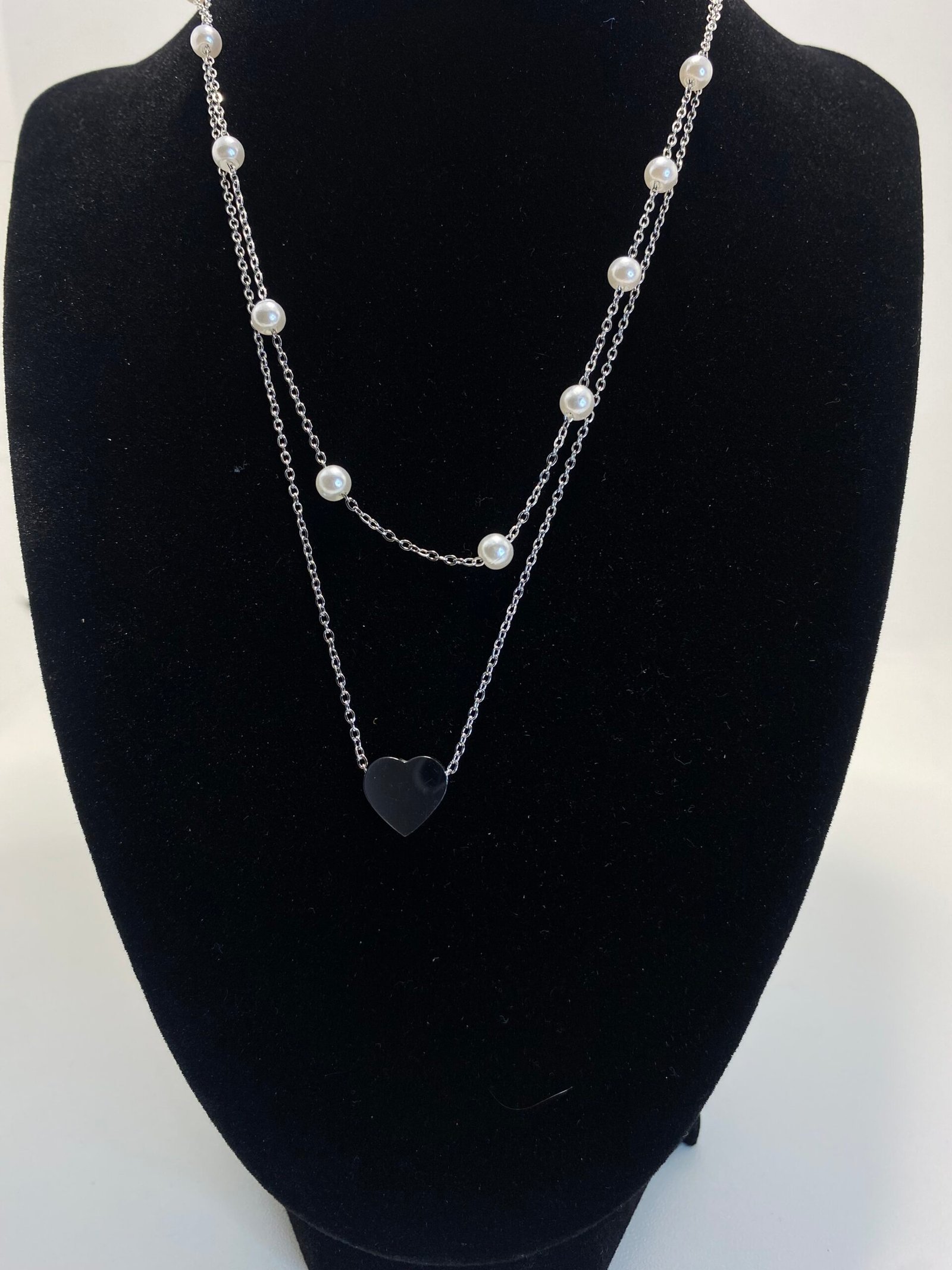 Elaborado en acero inoxidable con perlas blancas , este collar ofrece un aspecto lujoso a un precio asequible, por lo que es una excelente opción para aquellos que desean elevar su estilo sin romper el banco.