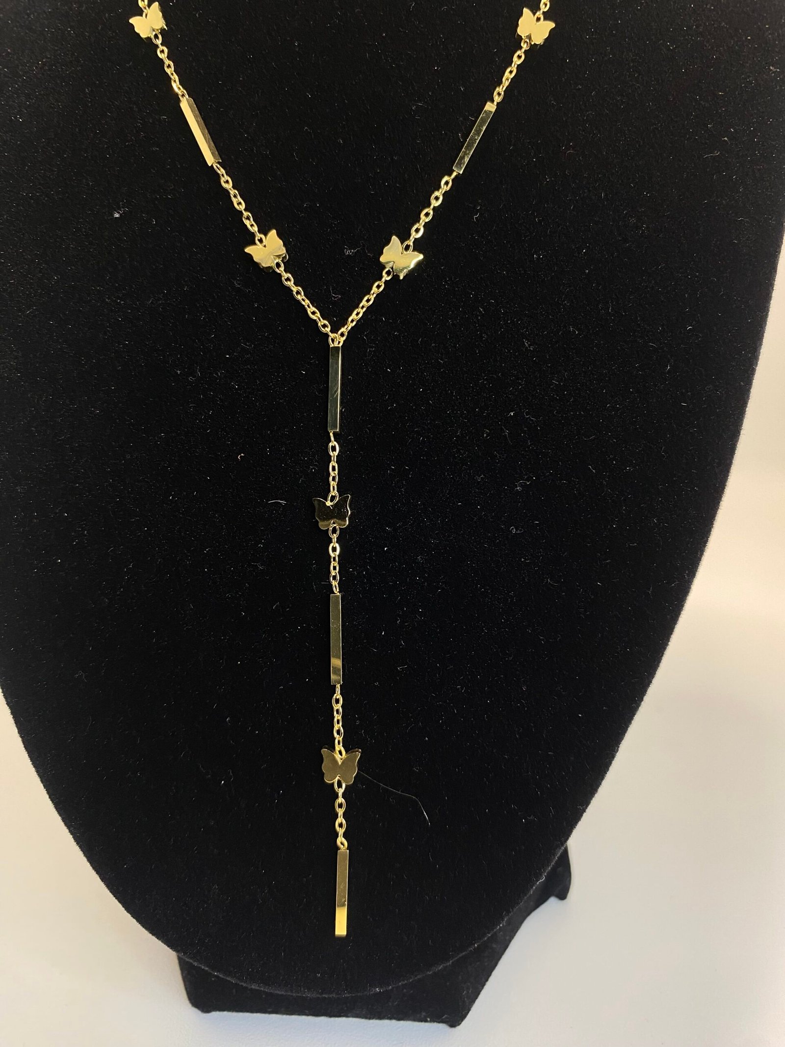 Collar tira cuadrada cuenta en forma de Y , mariposas