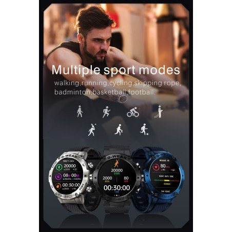 El K28M Smartwatch IP67 combina funcionalidad avanzada y diseño resistente. Su pantalla táctil HD de 1.4″ muestra información clara bajo cualquier luz, mientras su certificación IP67 lo protege de agua, sudor y polvo durante actividades deportivas o diarias. Monitoriza en tiempo real frecuencia cardíaca, sueño, pasos y calorías quemadas, además de ofrecer +20 modos deportivos (carrera, ciclismo, natación, etc.). Recibe notificaciones de llamadas, mensajes y redes sociales directamente en tu muñeca. Inclve funciones prácticas como control de música, recordatorios de sedentarismo, cronómetro y alarma. Con una batería de hasta 7 días de autonomía y correa ajustable de silicona hipoalergénica, es cómodo para uso prolongado.
