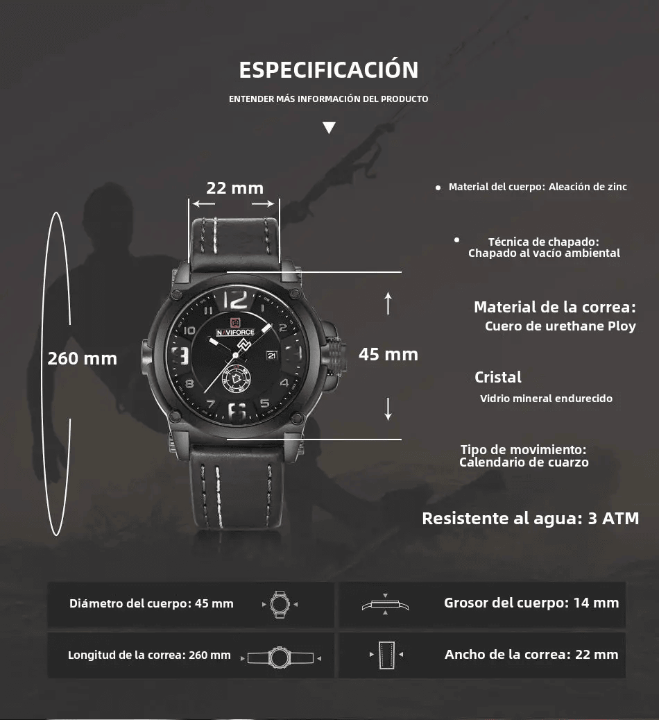 Nota: Perfecto para hombres dinámicos que buscan un reloj que equilibre rendimiento y elegancia. ¡Un accesorio que destaca en cualquier entorno, desde la oficina hasta la aventura al aire libre!
