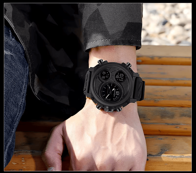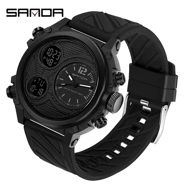 El Reloj Deportivo SANDA LED 100m es un accesorio diseñado para quienes llevan un estilo de vida activo. Su pantalla LED iluminada ofrece una visualización clara de la hora, fecha, cronógrafo y alarma, incluso en condiciones de poca luz. Con una resistencia al agua de 100 metros, es perfecto para nadar, bucear superficial o practicar deportes acuáticos.